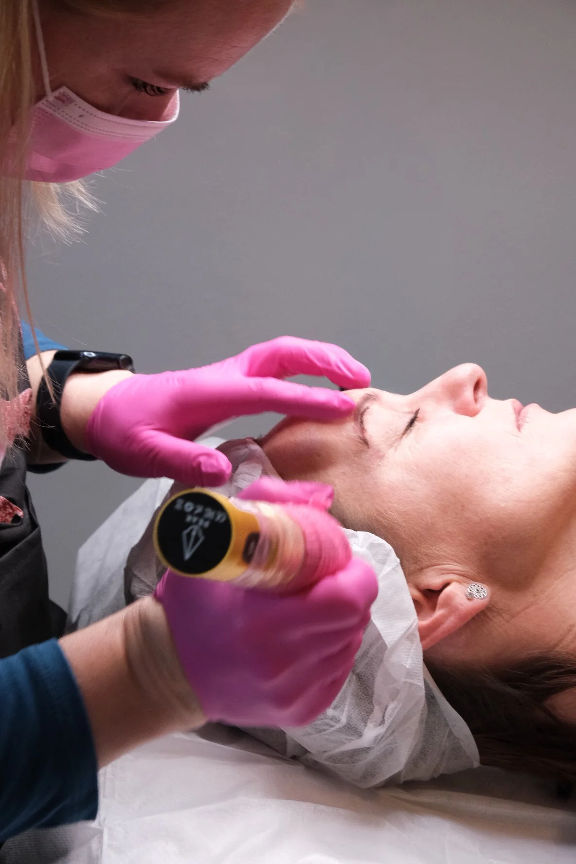 • Bitte ungeschminkt im Brauenbereich erscheinen